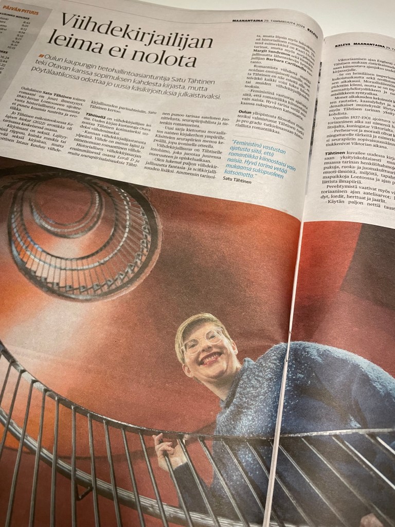 Kalevan Elina Ursin kävi haastattelemassa minua päivänä muutamana, ja juttu julkaistiin Kalevan verkkolehdessä sunnuntaina 28.1.2024 ja paperilehdessä maanantaina 29.1. Kyseessä on henkilövetoinen juttu, jossa keskustellaan paitsi uudesta kirjastani Lordi D ja muita seurapiirisalaisuuksia myös kirjoittamisesta ja hiukan työkuvioistakin.
